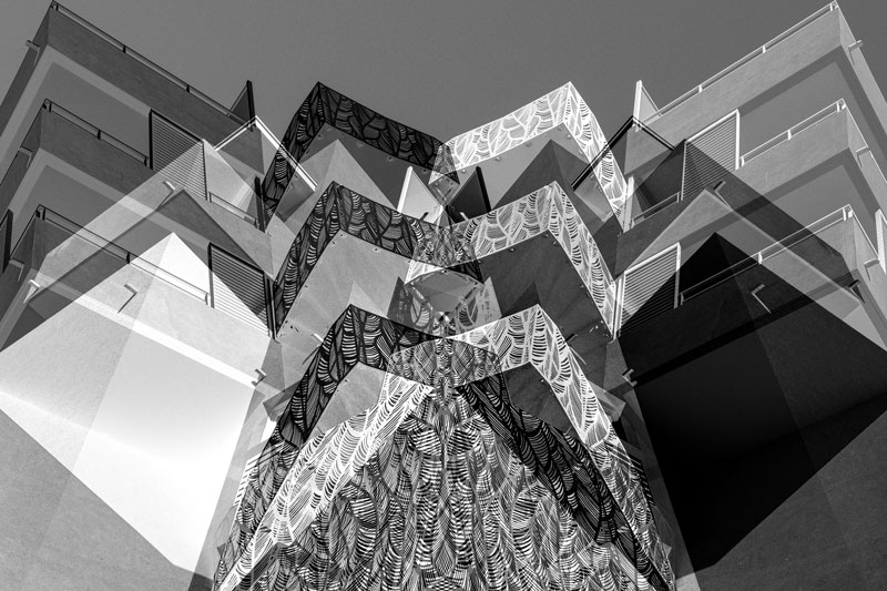 Chacune de ces photographies a été composée à partir d’une prise de vue originale, avec  l’intention de donner l’illusion d’une improbable rencontre entre les images numériques et les négatifs argentiques.