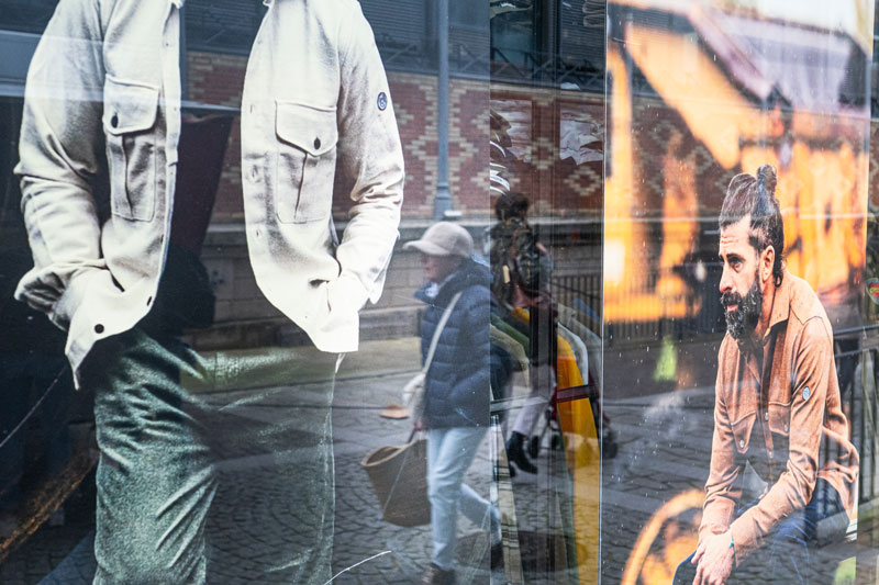 La rue n’est-elle pas un miroir de la société ? C’est donc au travers de reflets (on voit devant et derrière soi en même temps) que j’exprime ici mes visions de rue.