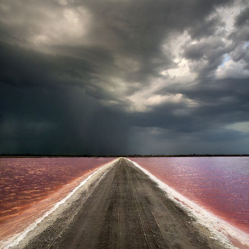 Les photos aériennes des paysages camarguais en été, en particulier les salins d’Aigues-Mortes, leurs formes picturales, graphiques et très colorées, contrastent avec les ambiances hivernales ou glacées du Grand Nord (Japon, Scandinavie, Groenland, Islande, Svalbard) souvent dans les tons pastels empreintes de sérénité.